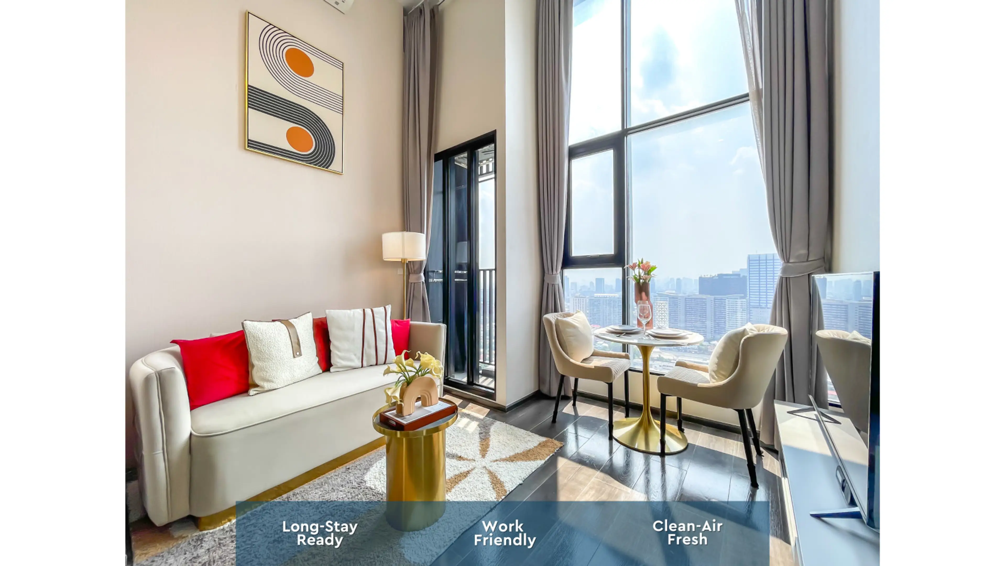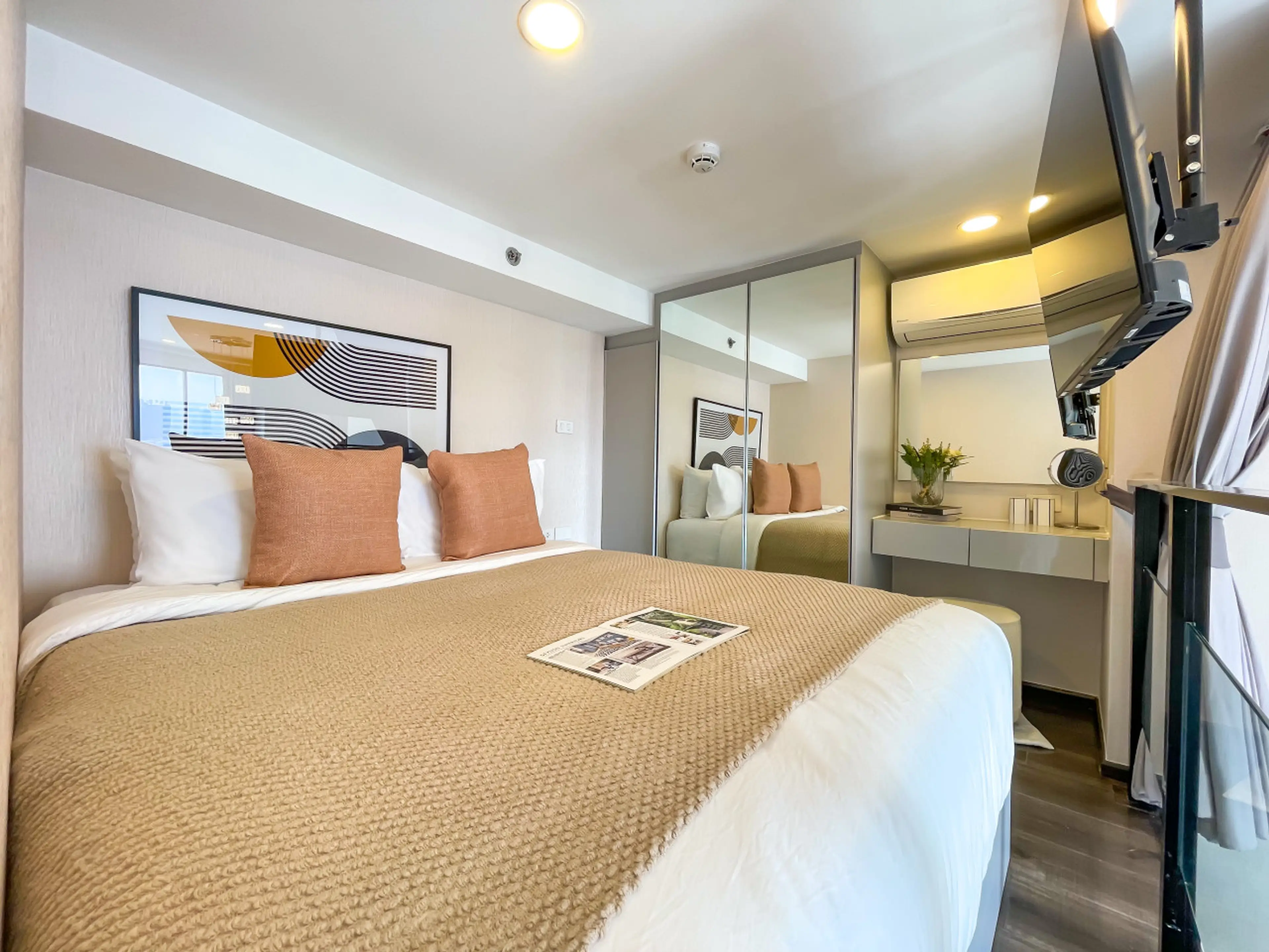 Stay in one of Bangkok’s most vibrant areas — just a 5-minute walk to BTS Phahonyothin 24 Station. This stylish 50 sqm duplex apartment with a panoramic skyline view is designed for digital nomads and long-stay professionals, combining comfort, productivity, and wellness. Guests rate Sontana 4.8★ ac...